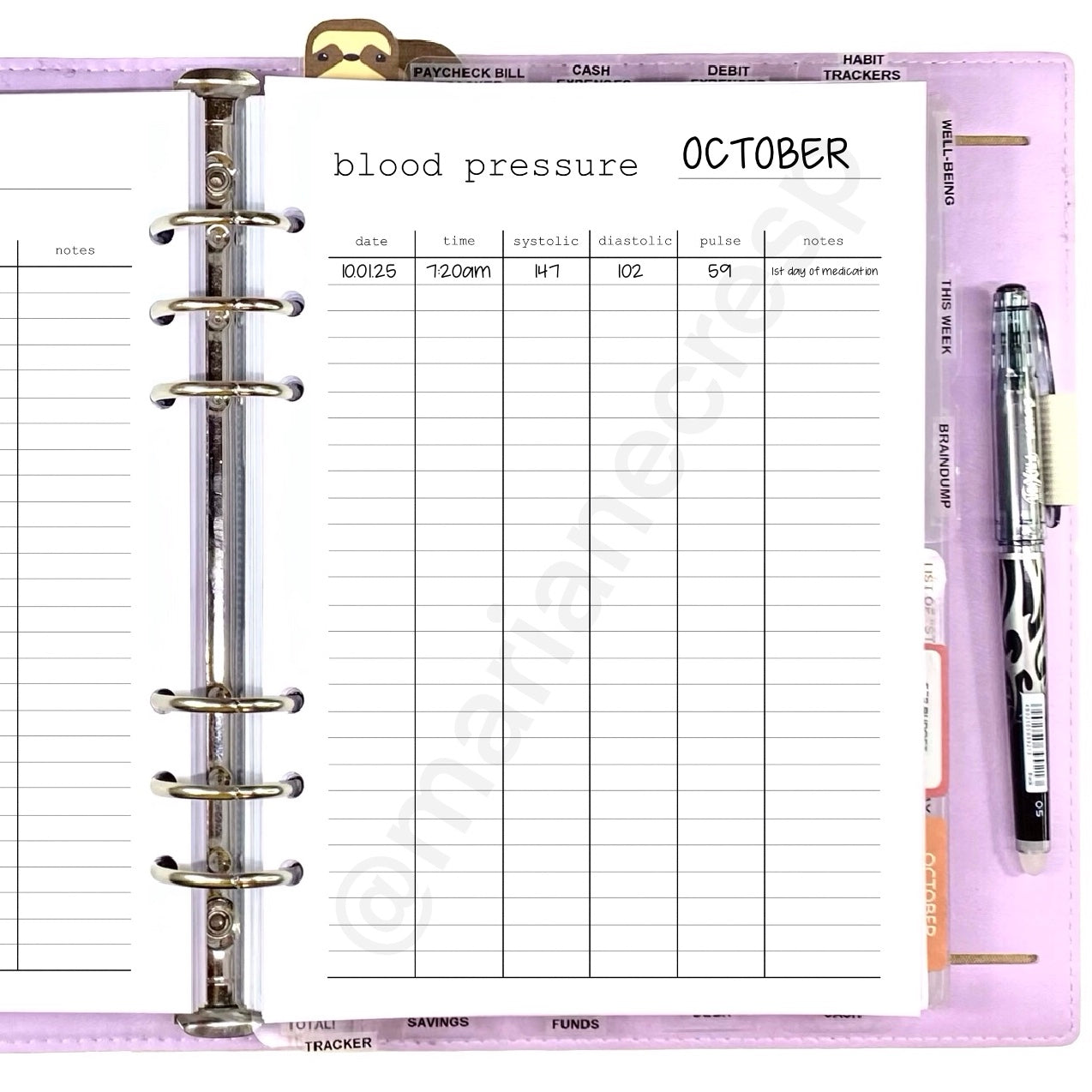 Keep your health records organised and easy to track with this A5 Blood Pressure Tracker. Designed to fit neatly into your planner, this printable makes it simple to log your daily readings and spot trends over time.